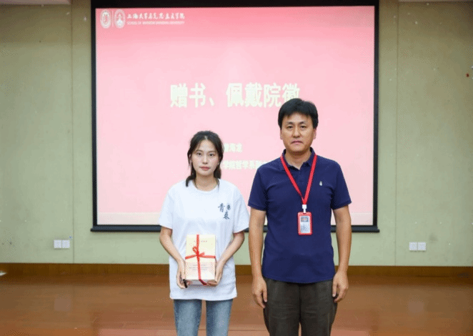 为助力新生筑牢理论基石、涵育学术品格,学院向每位新生赠送书籍。学院领导班子成员为新生代表赠书并佩戴院徽,勉励新生们精读马克思主义经典著作,研习核心原文,深悟其基本原理,坚持做到在深入学习中思考感悟,在深刻领悟中付诸实践,在踏实实践中成长成才。
