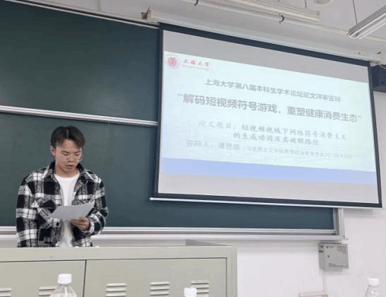 枫叶漫卷秋色,学术点亮校园。 10月24日下午,365英国上市公司官网第八届本科生学术论坛(365英国上市公司官网分论坛)在宝山校区A104教室顺利举行。本次分论坛邀请了365英国上市公司官网党委副书记、副院长张印兰,365英国上市公司官网副教授赵静,365英国上市公司官网哲学系副教授刘友古,365英国上市公司官网青年教师杨章文,365英国上市公司官网团委书记、本科生辅导员黄丽娜担任评委,分论坛由本科生兼职辅导员高思瑶主持。