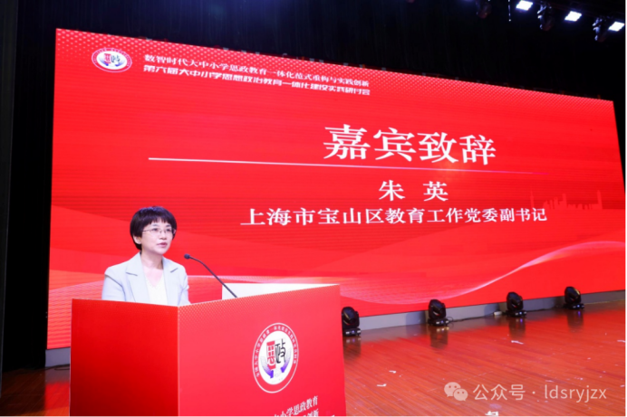 上海市宝山区教育工作党委副书记 朱英 上海市宝山区教育局副局长王晓波主持嘉宾致辞环节。