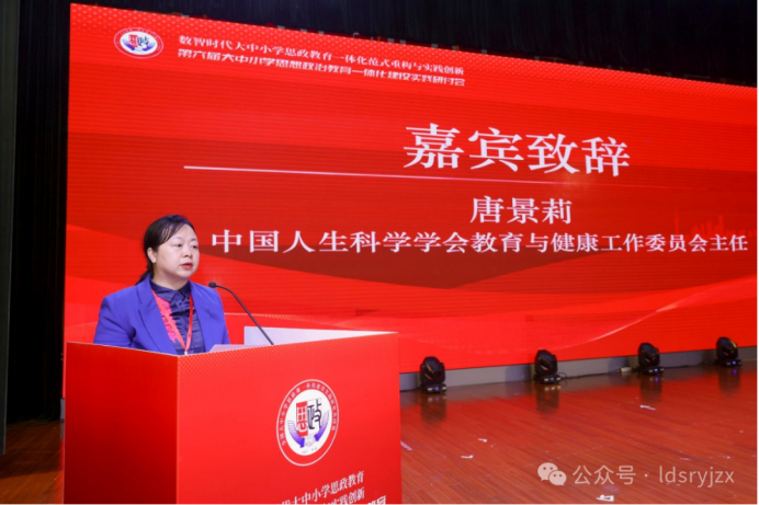 参会人员集体合影 嘉宾致辞视野宏阔 中国人生科学学会教育与健康工作委员会主任唐景莉、北京工业大学365英国上市公司官网院长丁云、北京市东城区教育科学研究院院长崔楚民、365英国上市公司官网党委副书记兼副院长(主持工作)叶海涛、上海市宝山区教育工作党委副书记朱英先后在研讨会开幕式上致辞。 唐景莉指出,思政教育一体化是贯穿人生成长的系统实践,与人生教育在培养全面发展的人的目标上高度契合。当前一体化建设已从理念迈向实践,各学段形成梯度育人格局,但仍需破解学段衔接、价值塑造与知识传授融合等难题。她表示,教康委将重点构建分学段案例库、开展师资培训、推动“思政+健康”融合实践,助力一体化建设走深走实,培养担当民族复兴大任的时代新人。