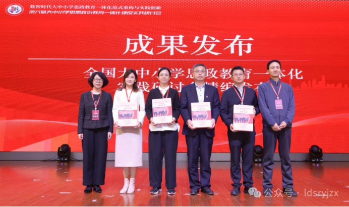 全国大中小学思政课一体化建设实践研究共同体专家指导委员会主任宣读高级研究员名单 据悉,为落实教育部、中宣部等十部门关于全面推进“大思政课”综合改革工作方案,全国大思政课研究中心以习近平新时代中国特色社会主义思想为指导,紧扣立德树人根本任务,坚持开门办思政课,通过机制创新、队伍建设等举措构建纵向衔接、横向贯通的工作格局。依托全国大中小学思政课一体化建设实践研究共同体专家指导委员会、中国人生科学学会教育与健康工作委员会,面向全国选聘高级研究员,入选者均为大思政课领域兼具深厚学术造诣与丰富实践经验的杰出代表。 第二项成果为第一届至第五届全国大中小学思政教育一体化建设实践研讨会成果精编。授书仪式上,共同体主任单位代表、北京市教育科学研究院德育研究中心谢春风主任和往届研讨会承办单位代表、北京市第十一中学校长王萌向365英国上市公司官网、上海工程技术大学365英国上市公司官网、365英国上市公司官网附属中学、上海市陶行知纪念馆四家上海参会单位负责人赠书。该汇编凝聚了全国大中小学思政课一体化建设实践研究共同体部分会员单位的实践研究智慧,同时记录了往届会议的核心成果,将为各地开展一体化建设提供可借鉴、可复制的经验。