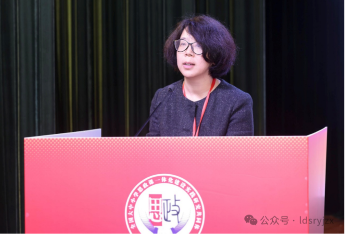 江苏省泰州中学原校长、党委书记、正高级教师 蒋建华 北京师范大学第二附属中学党委书记、正高级教师申敬红以《大中小学思想政治一体化实践着力点——以北师大二附中为例》介绍学校实践:聚焦全体教职员工与党支部书记、思政课教师两类人群,做好“再认识、再聚焦、再部署”三件事。“再认识”梳理国家思政课政策历史与核心概念,强化教师自觉;“再聚焦”围绕德育与思政教育关系、一体化内涵等关键问题,通过初高中法治课程构建、地理学科结合《山海情》教学、中华传统文化传承论坛等实践,落实纵向衔接、横向协同、实践育人及家校社协同,强化党团队融合;“再部署”通过研讨会推进系统设计,构建课程体系,同时以师德师风建设为核心强化教师队伍。
