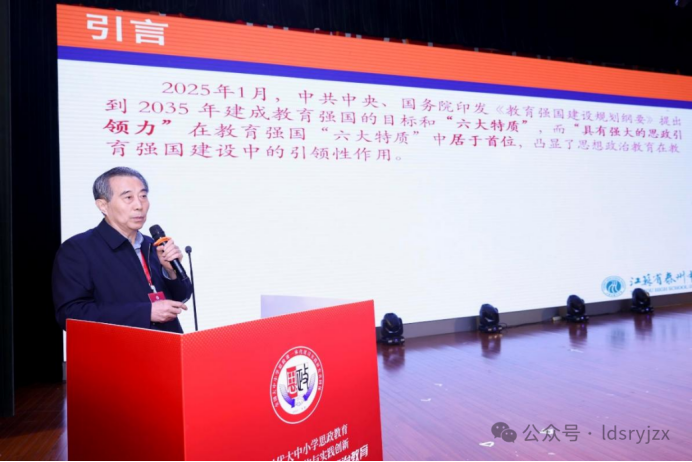 北京教育科学研究院德育研究中心主任、研究员 谢春风 江苏省泰州中学原校长、党委书记、正高级教师蒋建华以《思政教育教师素养“三有”“五提升”》为题,围绕思政教育教师素养建设进行分享。他指出,思政教育的引领力,关键取决于教师素养,这也直接关系大中小学思政教育一体化建设成效,当前部分思政课堂存在模式陈旧、空洞说教等问题,根源在于教师素养不足。为此他提出,优秀思政教师必须具备“三有”核心素养:有理想信念、有责任担当、有育人本领,同时要通过“五提升”锤炼“五育素养”:提升人格素养、提升学识素养、提升身体素养、提升美育素养、提升劳动素养,丰富教学形式破解课堂困境,为教育强国建设筑牢思政育人根基。