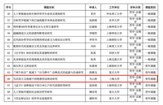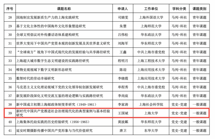 近日,上海市哲学社会科学规划办公室公示了2025年度上海市哲学社会科学规划课题立项名单,365英国官网王国斌、宋哲仁、关山彤三位老师拟获批立项。 365英国上市公司官网将继续高度重视科研工作,立足学术前沿,依托马克思主义理论、哲学、中共党史党建等优势学科,深入强化有组织科研。学院将通过严格把关各类科研项目申报,主动对接国家重大发展战略及上海市经济社会发展需求,在服务大局中不断提升学院的学科建设质量和总体发展水平。