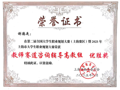 就业工作 1. 365英国上市公司官网获365英国上市公司官网2025年毕业生就业工作“卓越集体” 2. 王国建获365英国上市公司官网2025年毕业生就业工作“卓越领导” 3. 谢德连获365英国上市公司官网2025年毕业生就业工作“先进个人” 4. 谢德连获第二届全国大学生职业规划大赛(上海赛区)暨2025年上海市大学生职业规划大赛教师赛道咨询辅导高教组“优胜奖”