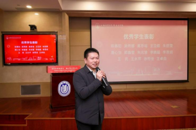 在学生表彰环节,马院校友分会第二届理事会副会长、温州市尚品空调工程有限公司、浙江中誉医疗设备有限公司董事长尚永禹为过去一学年在学术研究、社会实践、志愿服务等方面表现优异的获奖学生代表颁奖。他对学院近些年来的快速发展表示祝贺,也对未来上大马院的继续蓬勃向上寄以期待,祝愿全体师生凝心聚力,携手共进。