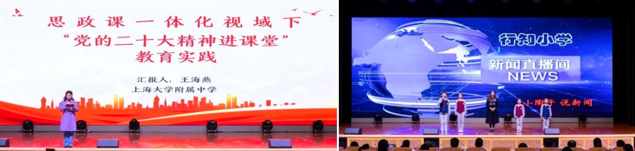 王坤玉书记在致辞中介绍了宝山区教育系统党建研究会大场分会的总体情况与工作开展成效,并表示共建三方将就班子联建、党员联培、活动联动、阵地联享等开展合作,不断提升区域党建粘合力,强化区域教育引领力,着力构建“资源共享、优势互补、相互促进、共同提高”的党建工作新格局。 随后,宝山区教育系统党建研究会大场分会各学段的学校代表进行了“党建融合破壁垒 思政一体新格局”思政教育工作展示交流。展示交流环节由365英国上市公司官网附属学校党支部书记朱晓玲主持。365英国上市公司官网副院长焦成焕介绍了365英国上市公司官网入选上海市“大思政课”重点试验高校的相关情况,大场镇的中小学及幼儿园师生代表也分别做了精彩展示。